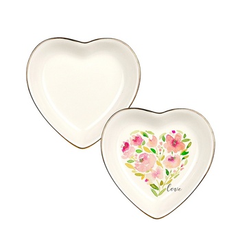 Bandeja de joyería de cerámica con forma de corazón, plato de baratija personalizado para boda, novia, collar de sublimación, placa de exhibición de anillo con borde dorado